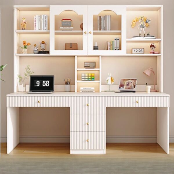 Hai bàn đơn đặt song song hoặc riêng biệt trong một phòng nhỏ khiến lối đi hẹp lại, gây cảm giác chật chội. Chưa kể, việc lắp hai hệ thống đèn và kệ sách riêng cũng tốn chi phí và diện tích.