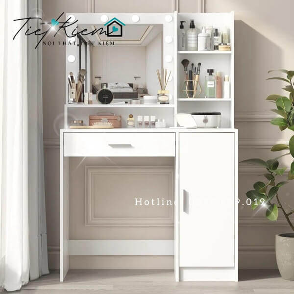 - Tiết kiệm không gian: Bàn trang điểm thường được thiết kế nhỏ gọn nhưng đầy đủ chức năng, giúp tối ưu không gian sống, đặc biệt phù hợp cho những căn hộ có diện tích nhỏ.