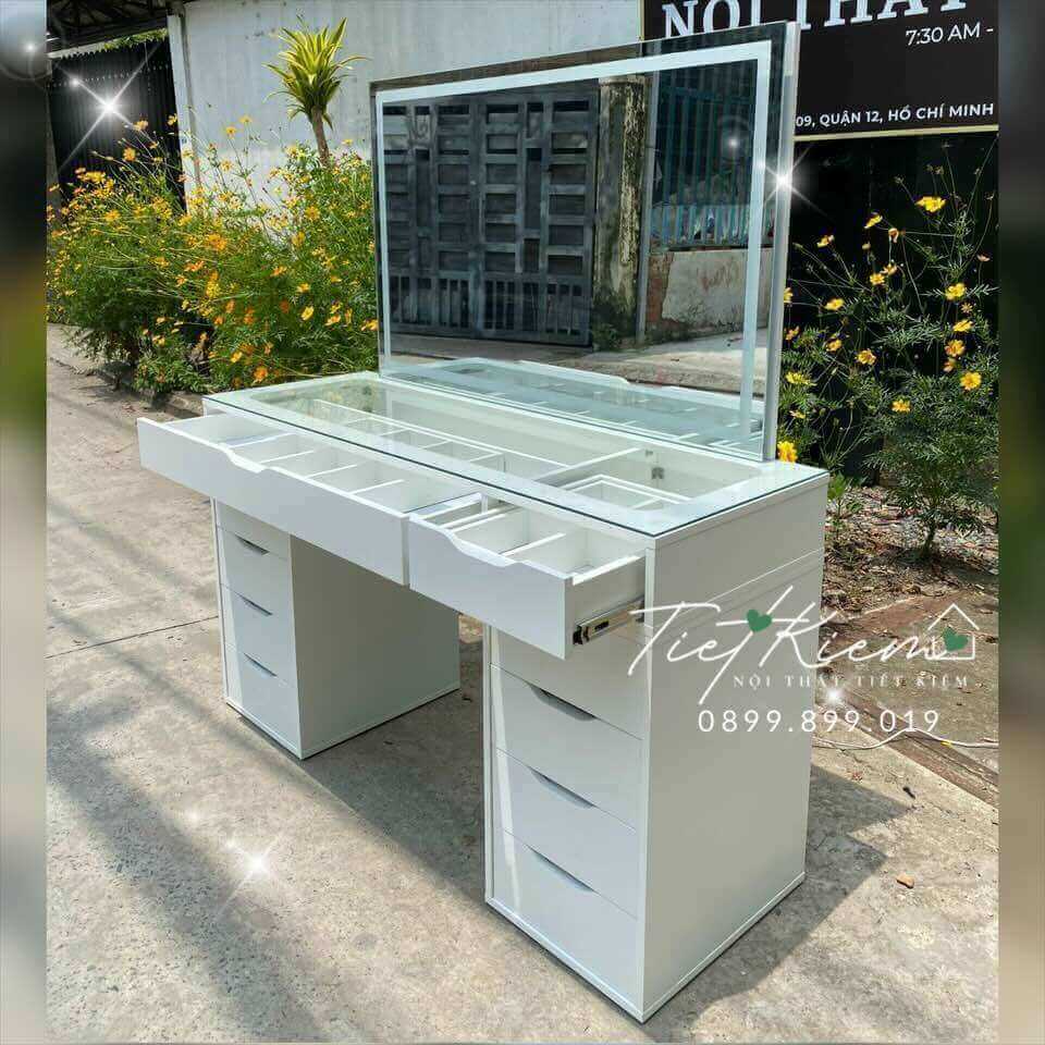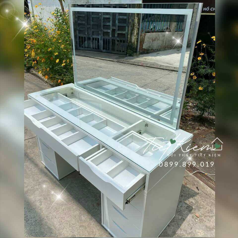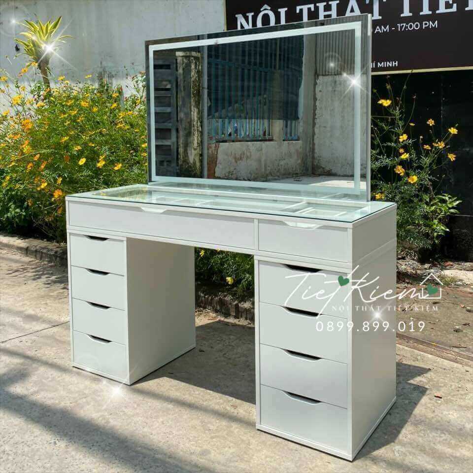 - Bàn trang điểm đa năng có gương đèn LED: Kết hợp nhiều ngăn kéo lưu trữ tiện lợi.