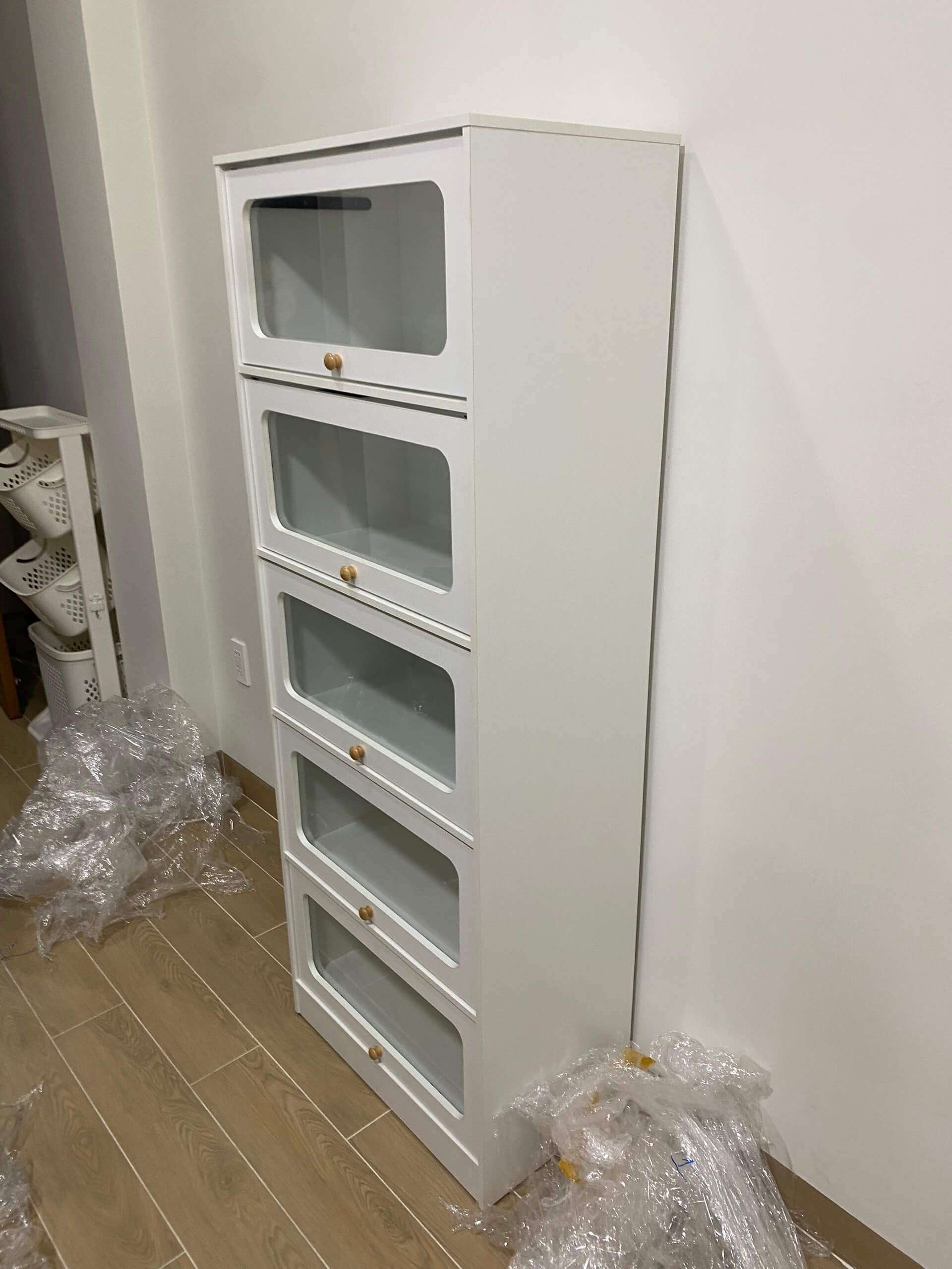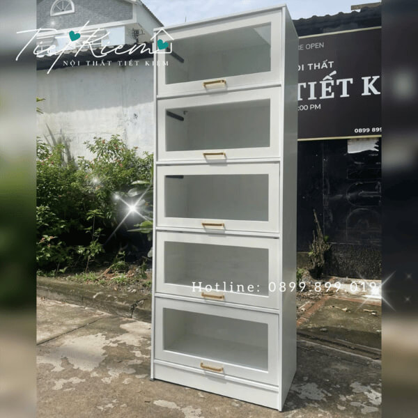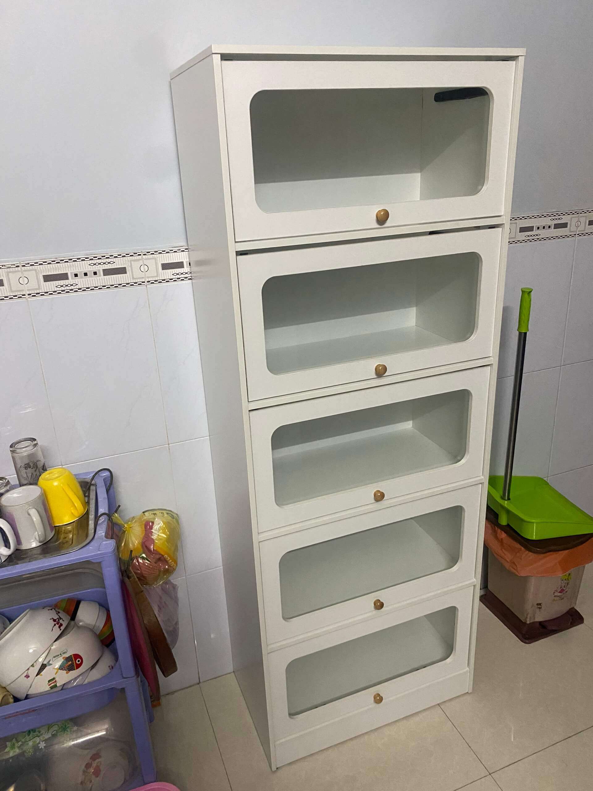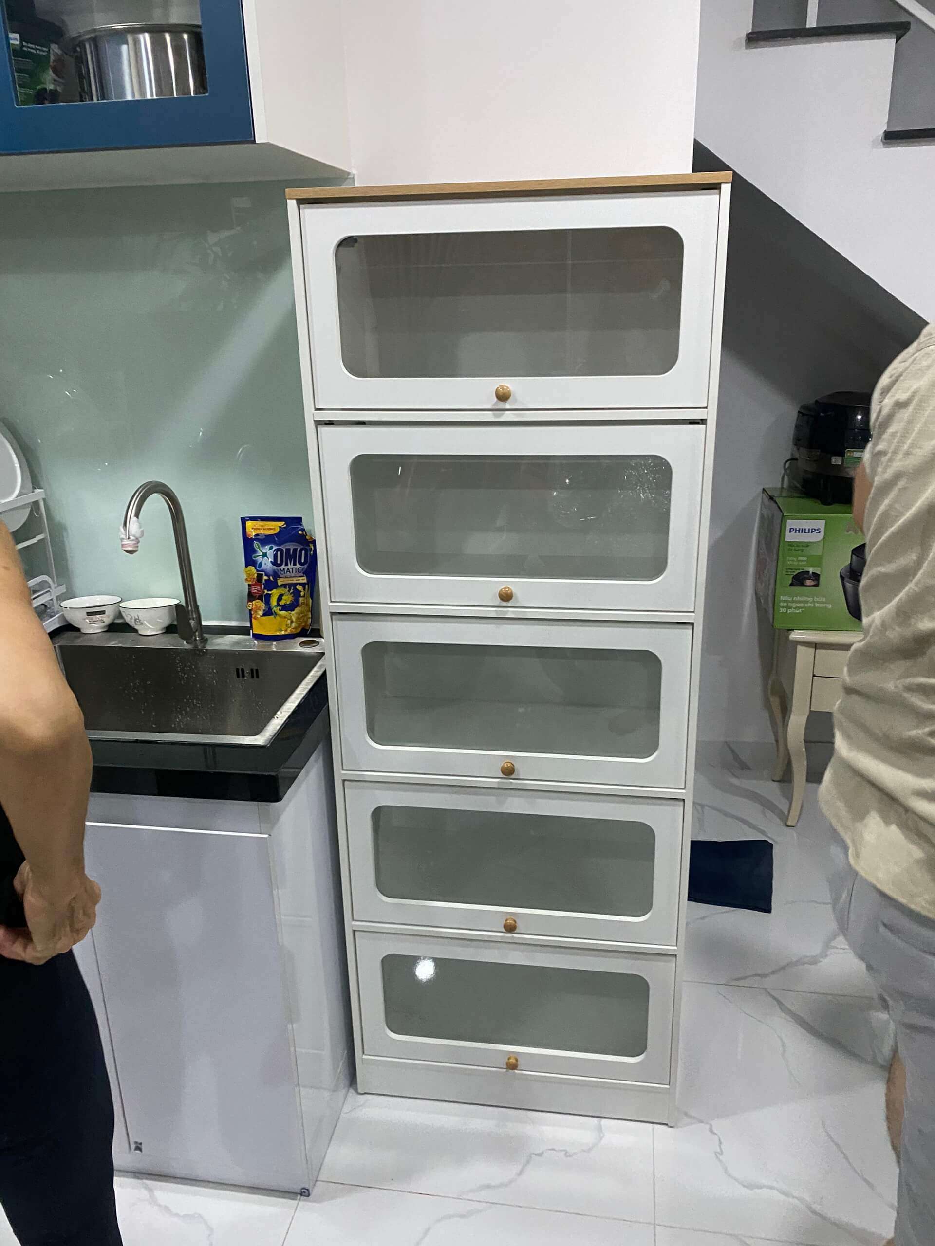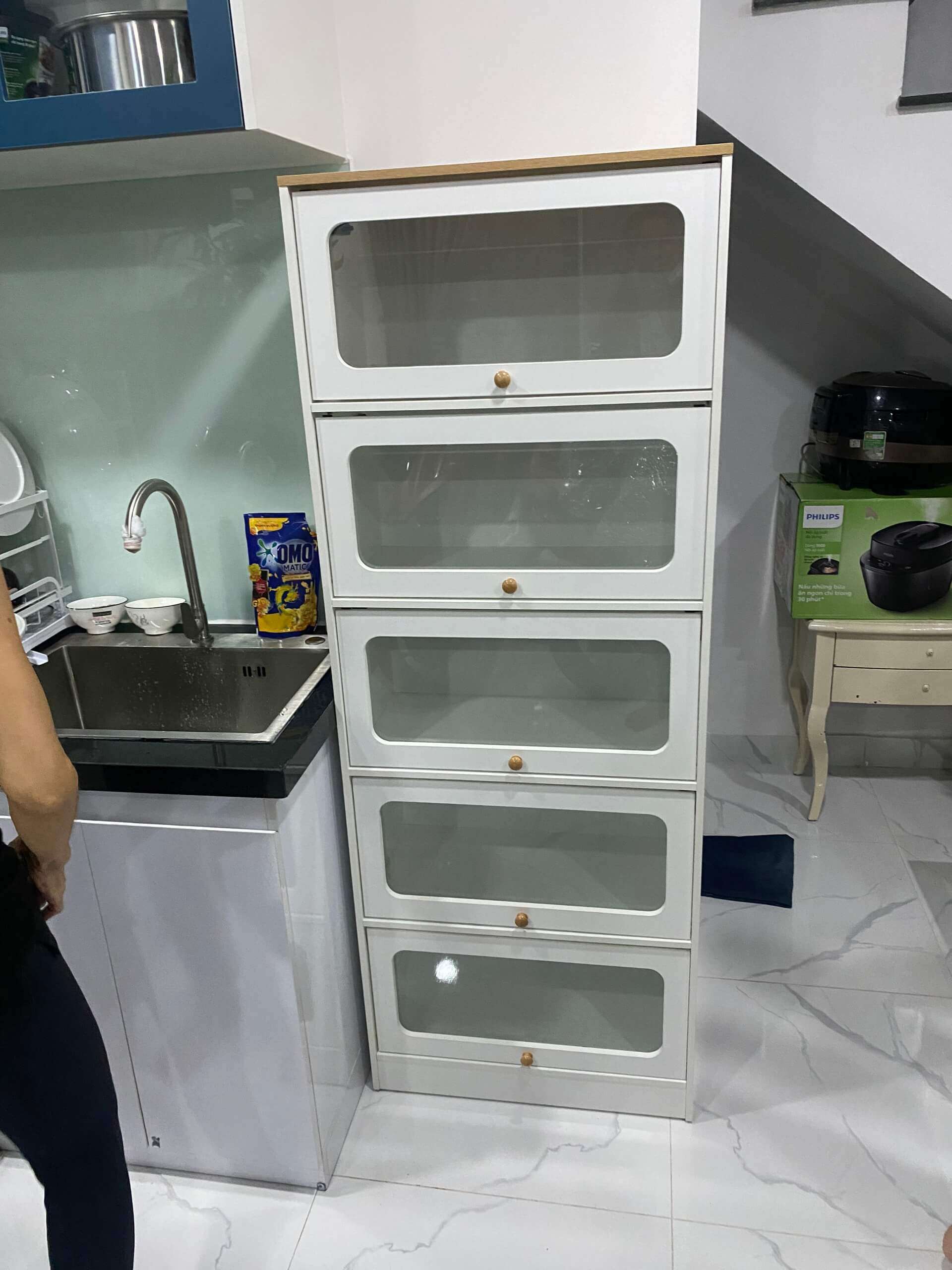 Kệ để đồ nhà bếp đa năng gỗ 5 tầng cánh trong suốt