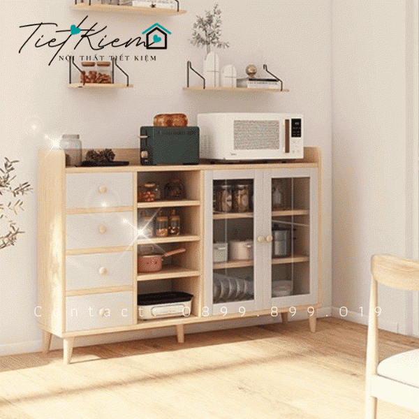 - Thiết Kế Đa Dụng: Kệ để lò vi sóng gỗ được thiết kế với nhiều ngăn kệ và hộc tủ, giúp bạn dễ dàng sắp xếp và trưng bày các thiết bị nhà bếp một cách gọn gàng và ngăn nắp. Không gian lưu trữ được tối ưu hóa để đảm bảo rằng bạn luôn có đủ chỗ cho tất cả các vật dụng cần thiết.
