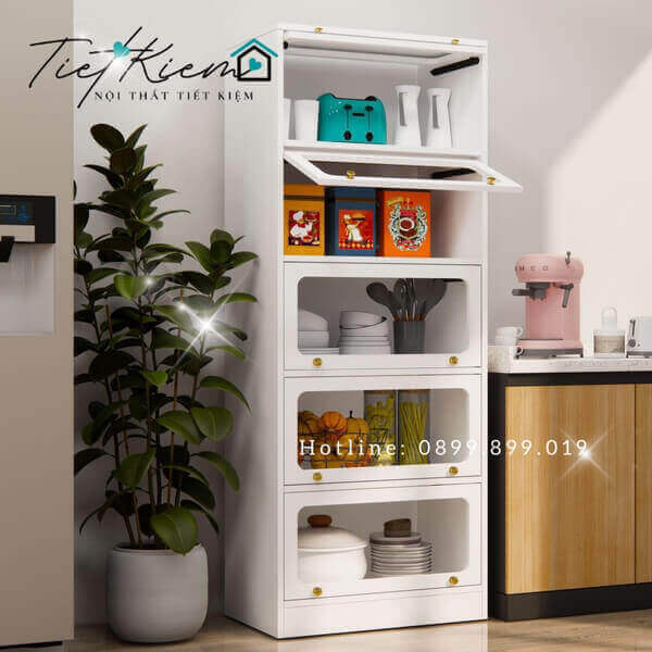 Kệ nhà bếp cánh lật 5 tầng là giải pháp lý tưởng để nâng tầm không gian bếp của bạn. Với thiết kế tinh tế, đa dạng và chức năng tiện ích, kệ nhà bếp không chỉ giúp lưu trữ đồ dùng một cách ngăn nắp mà còn tạo nên sự sang trọng, hiện đại cho gian bếp. Sản phẩm được làm từ chất liệu gỗ MDF cao cấp, hạn chế trầy xước bề mặt, xử lý chống thấm bề mặt và dễ dàng vệ sinh, đảm bảo độ bền đẹp trong suốt quá trình sử dụng.