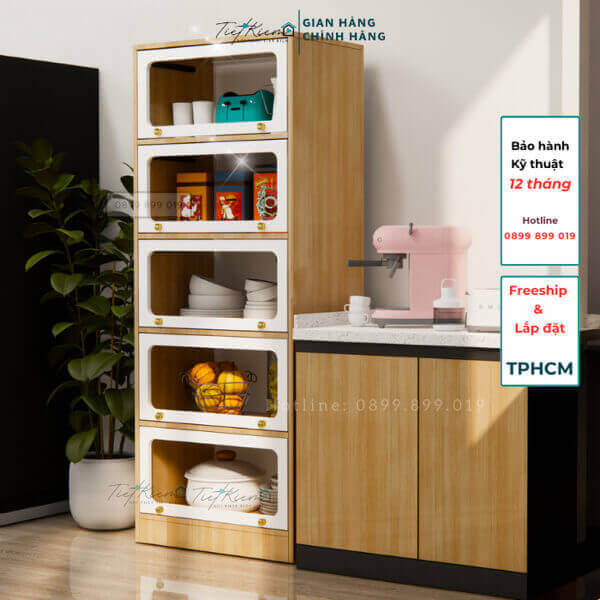 Kệ nhà bếp để chén 5 tầng là giải pháp lý tưởng để nâng tầm không gian bếp của bạn. Với thiết kế tinh tế, đa dạng và chức năng tiện ích, kệ nhà bếp không chỉ giúp lưu trữ đồ dùng một cách ngăn nắp mà còn tạo nên sự sang trọng, hiện đại cho gian bếp. Sản phẩm được làm từ chất liệu gỗ MDF cao cấp, hạn chế trầy xước bề mặt, xử lý chống thấm bề mặt và dễ dàng vệ sinh, đảm bảo độ bền đẹp trong suốt quá trình sử dụng.
