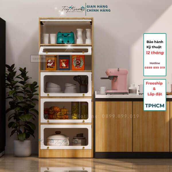 Kệ bếp thông minh cánh lật lên đấy vào 5 tầng