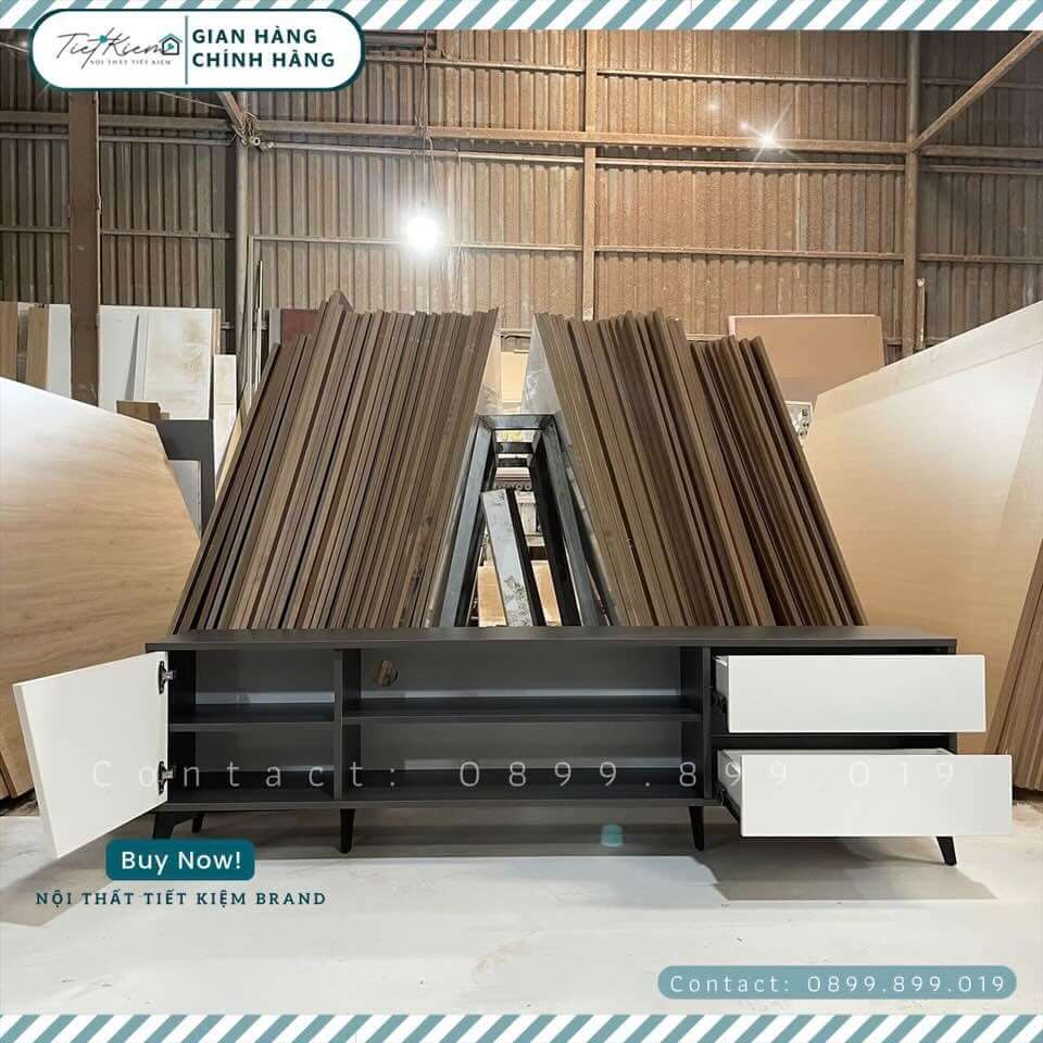 Với quy mô xưởng sản xuất lớn và trang thiết bị hiện đại, mỗi sản phẩm tại Nội Thất Tiết Kiệm đều được kiểm tra kỹ lưỡng, đảm bảo đạt tiêu chuẩn cao về chất lượng. Các sản phẩm của chúng tôi được thiết kế với chất liệu bền đẹp, tạo điểm nhấn tinh tế trong từng không gian và mang lại tính công năng cao, giúp tối ưu hóa không gian sống một cách hiệu quả. Kệ tivi phòng khách của chúng tôi không chỉ giúp bạn sắp xếp gọn gàng các thiết bị điện tử mà còn là điểm nhấn thẩm mỹ hoàn hảo cho phòng khách, tạo nên sự sang trọng và ấn tượng.