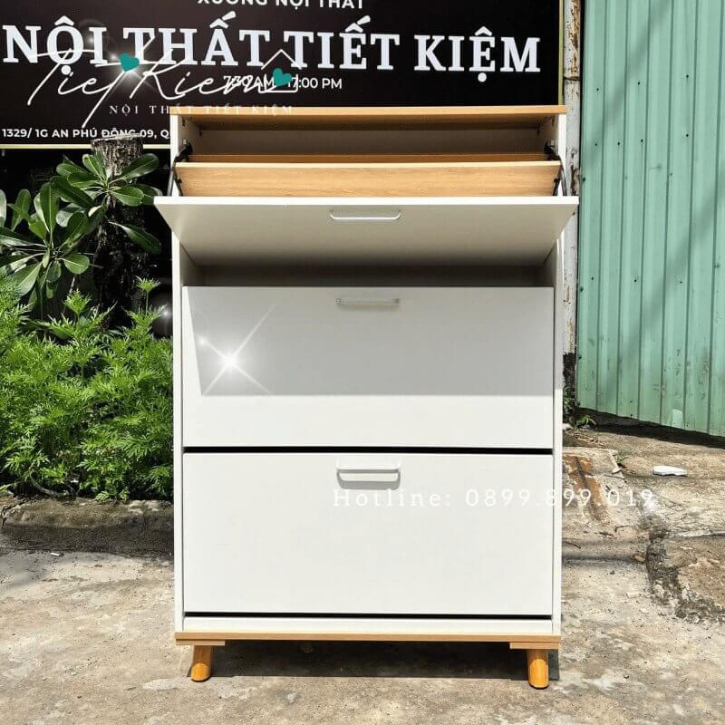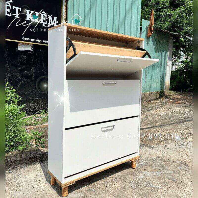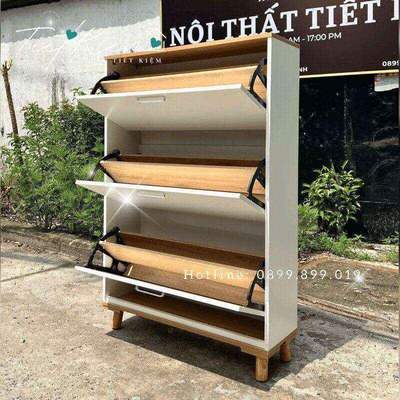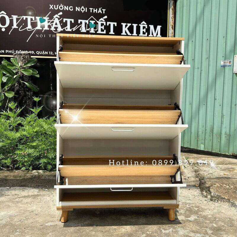 - Tiết Kiệm Không Gian: Thiết kế giúp bạn tận dụng tối đa diện tích phòng khách, tạo ra nhiều không gian lưu trữ cho giày dép và phụ kiện một cách gọn gàng và ngăn nắp.