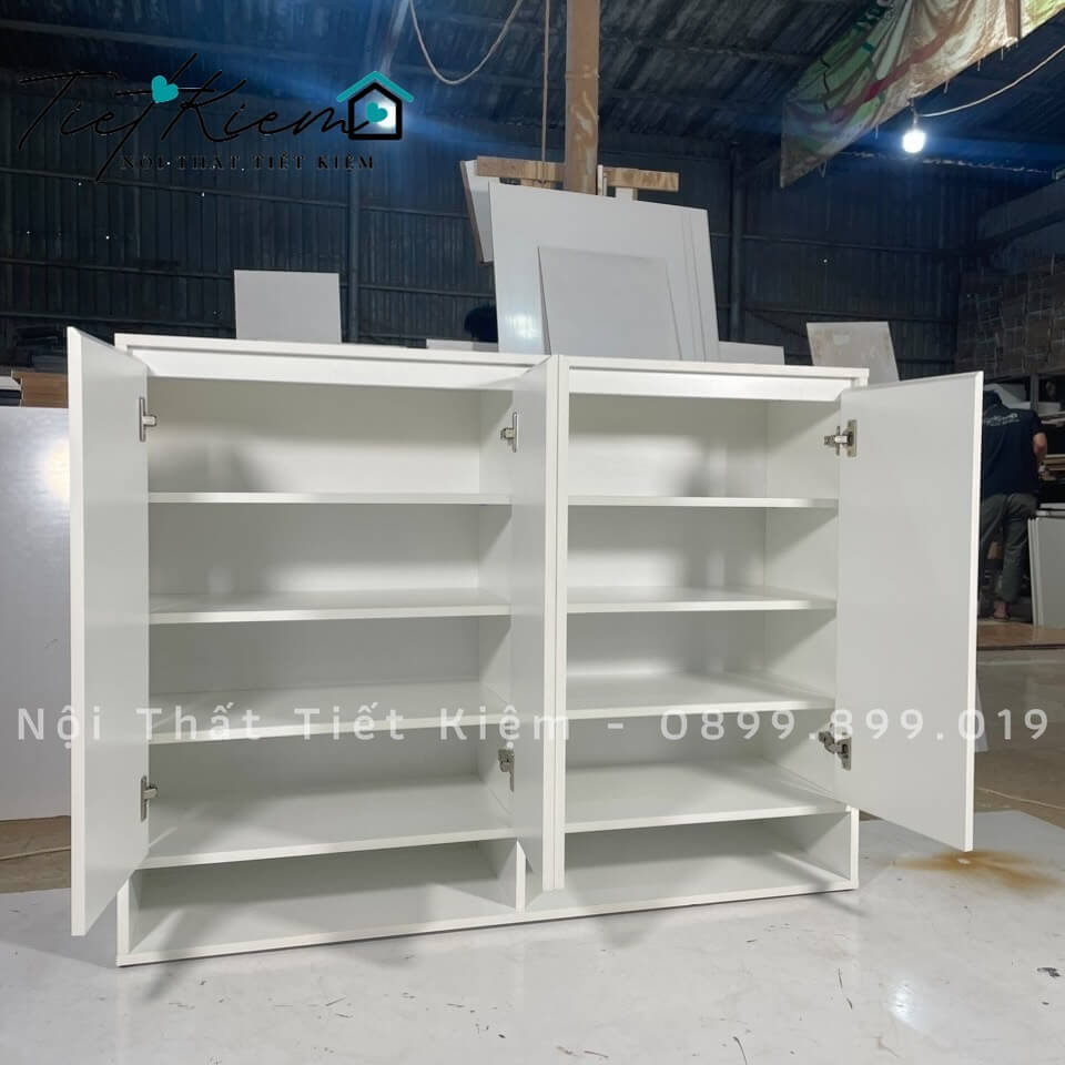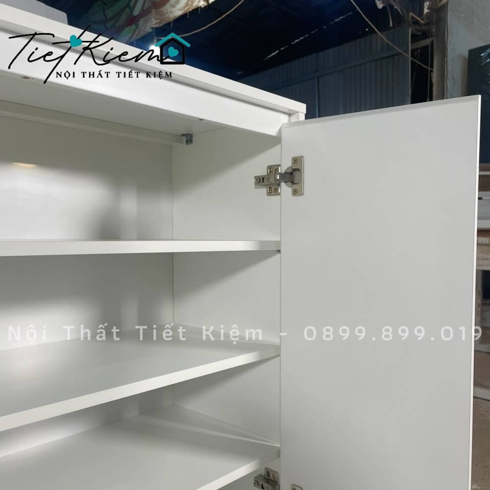 • Chất Liệu Cao Cấp: Tủ giày cửa mở được làm từ gỗ MDF lõi nhập khẩu, phủ Min trắng hoặc vân gỗ, hạn chế trầy xước, chống cong vênh, hạn chế ẩm mốc, dễ lau chùi.