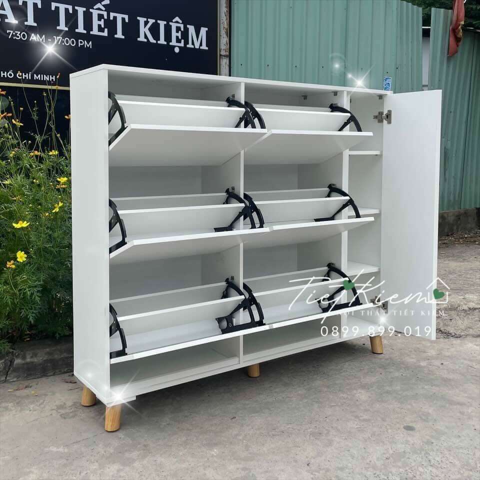 Tủ đựng được khá nhiều giày, cánh mở trơn tru. Chất lượng sản phẩm tốt, đáng tiền, mọi người nên mua.