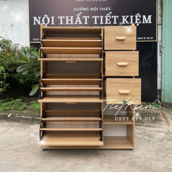 Tủ giày nhỏ gọn giúp tiết kiệm diện tích, giữ khu vực cửa ra vào gọn gàng và phù hợp cho nhà phố, căn hộ chung cư hiện đại.