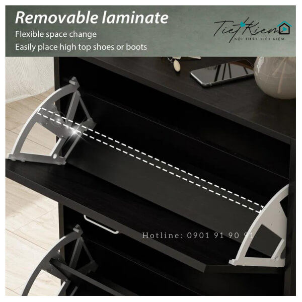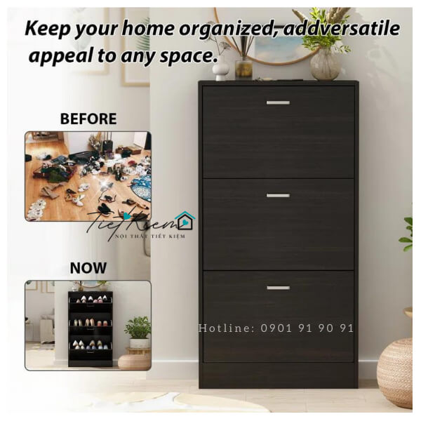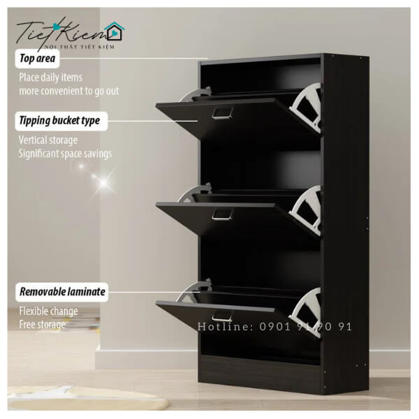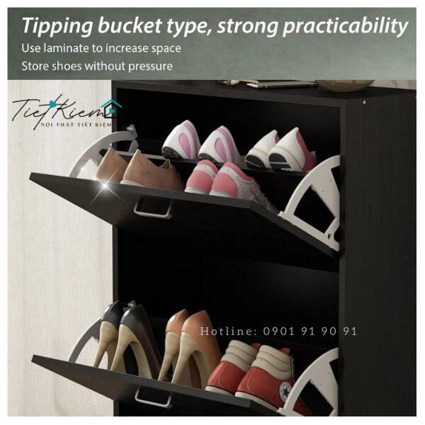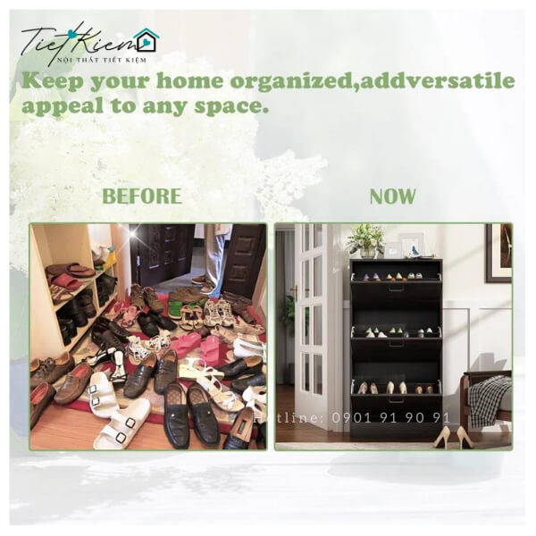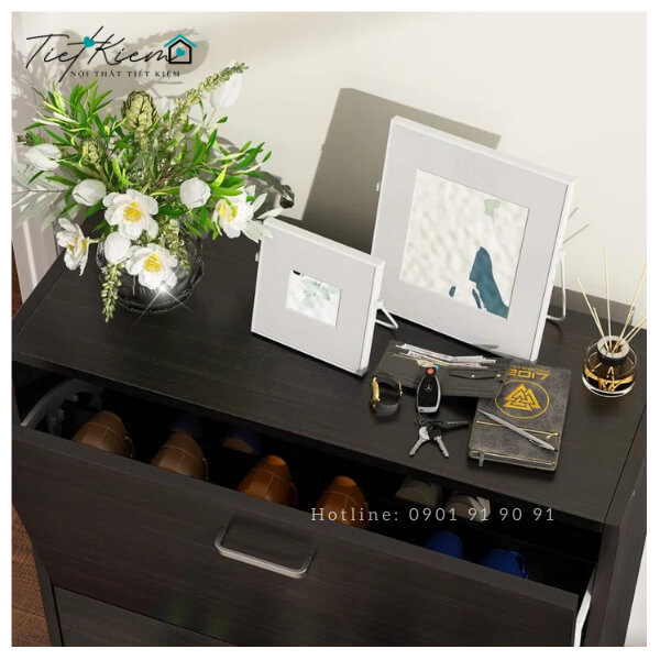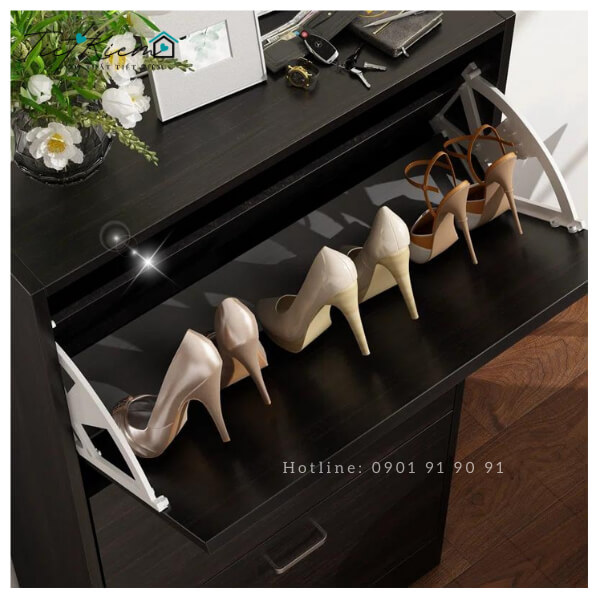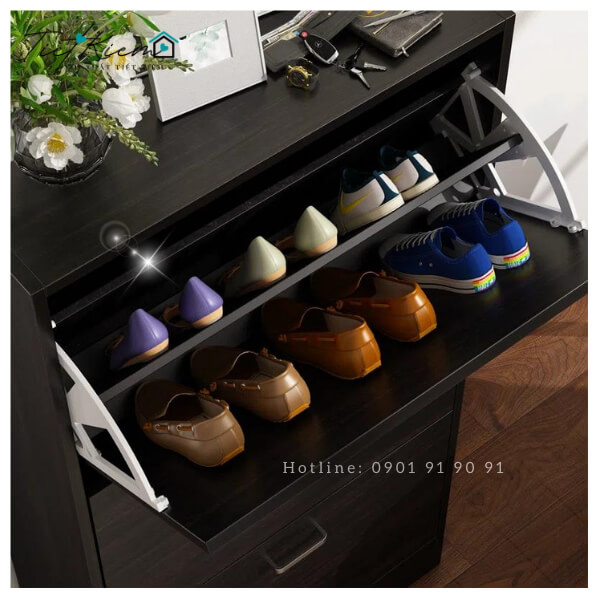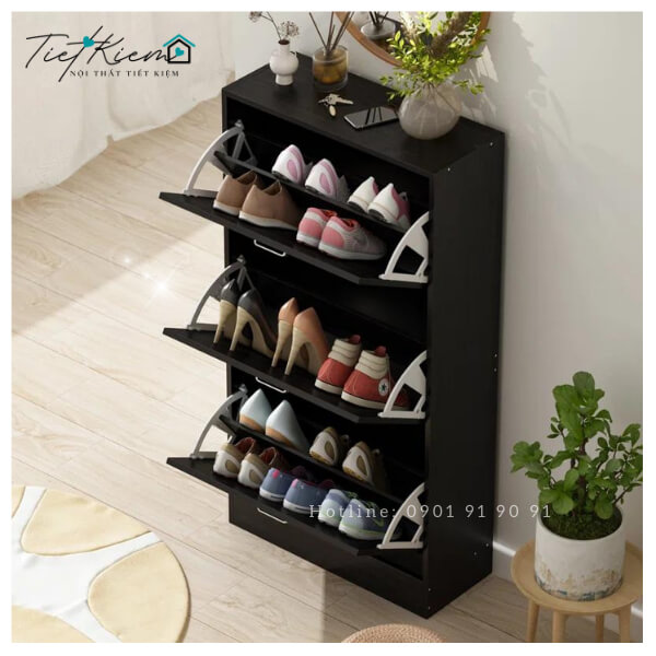 - Tiết Kiệm Không Gian: Thiết kế giúp bạn tận dụng tối đa diện tích phòng khách, tạo ra nhiều không gian lưu trữ cho giày dép và phụ kiện một cách gọn gàng và ngăn nắp.