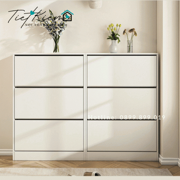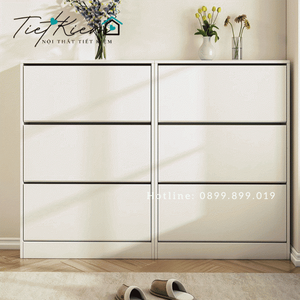 Tủ giày thông minh siêu mỏng được thiết kế với các ngăn kéo và kệ lưu trữ linh hoạt, giúp tối ưu hóa không gian lưu trữ cho nhiều loại giày dép và phụ kiện. Với thiết kế thông minh, bạn có thể dễ dàng sắp xếp và tìm kiếm các đôi giày mà không tốn nhiều thời gian. Tủ giày thông minh gỗ còn tích hợp các ngăn kéo nhỏ để chứa các vật dụng nhỏ như chìa khóa, găng tay, và các phụ kiện khác, giữ cho không gian sống của bạn luôn gọn gàng và ngăn nắp.