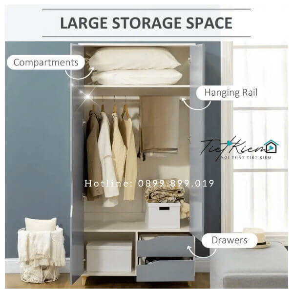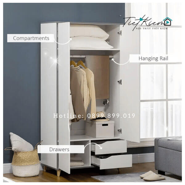 • Thiết Kế Đa Dụng: Với nhiều ngăn kệ và hộc tủ, tủ quần áo trẻ em nhỏ giúp bạn lưu trữ quần áo và phụ kiện một cách gọn gàng.