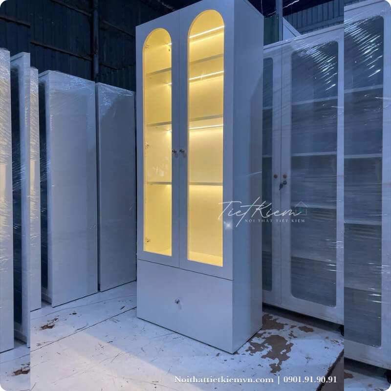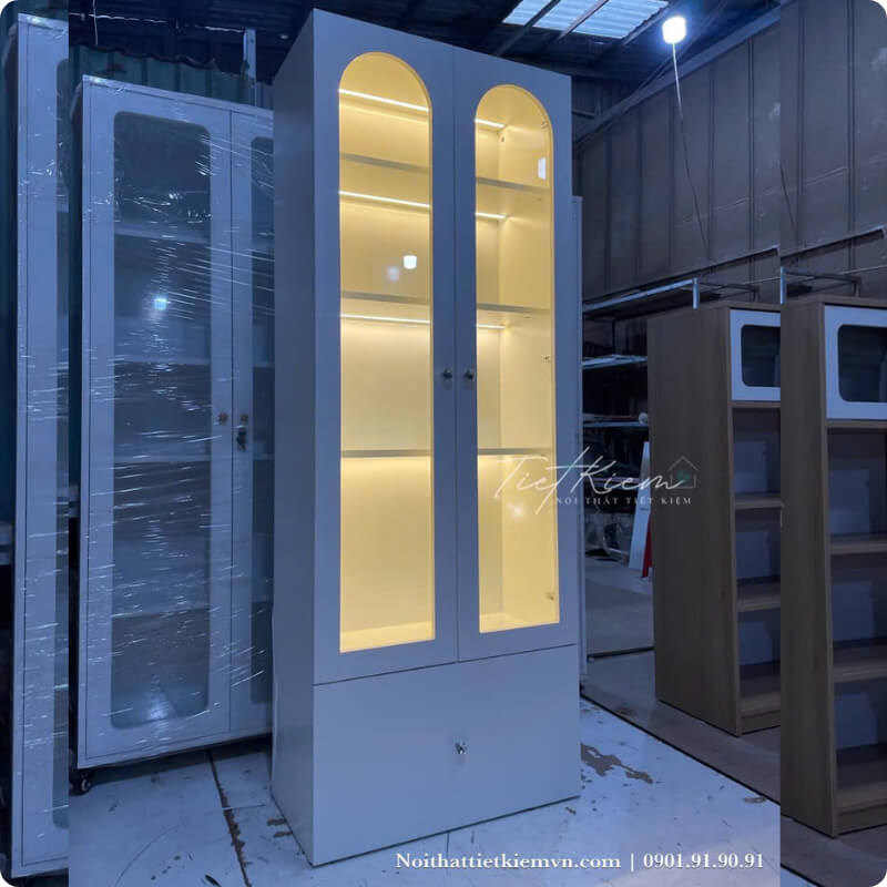 Hiện tại, sản phẩm tủ trưng bày có đèn LED được Nội Thất Tiết Kiệm cung cấp với nhiều lựa chọn về kích thước, màu sắc và thiết kế phù hợp với từng không gian thực tế. Bạn có thể đặt mẫu có sẵn hoặc yêu cầu theo thông số riêng.
